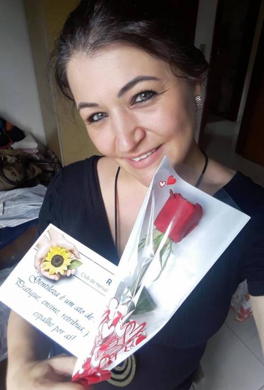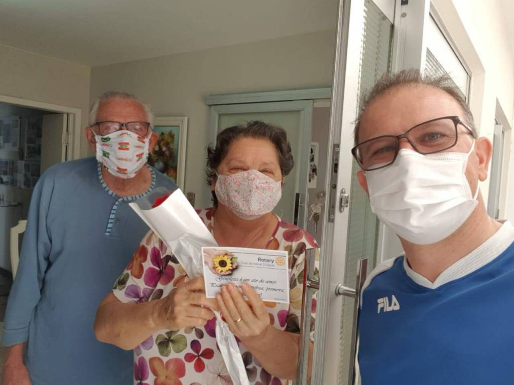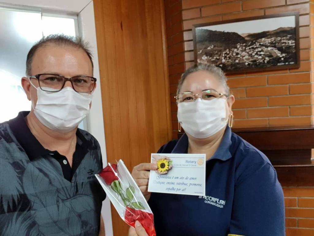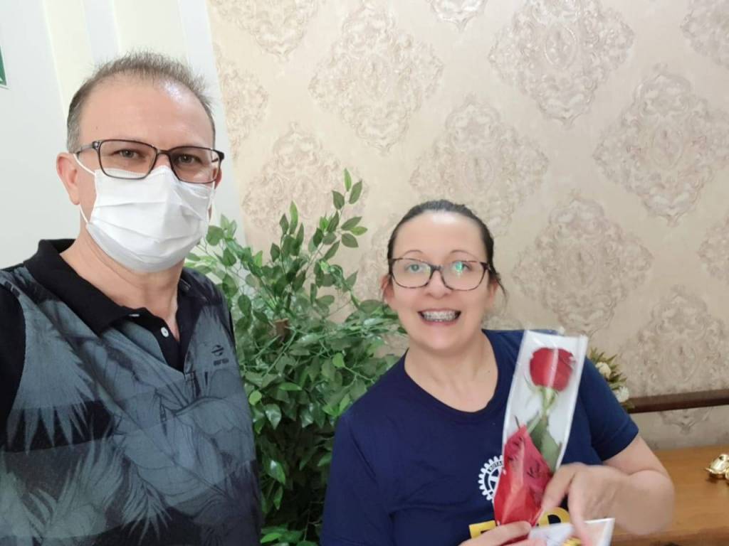De forma simbólica, em nome do Rotary e de seu presidente André Rodrigo Neuhauser, o companheiro Nesio Palla entregou pessoalmente um botão de rosa a todas as Rotarianas e companheiras da Casa da Amizade Roselaine Matevi.
