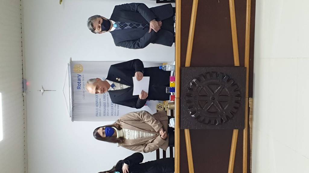 Na noite do dia 01 de julho, na sede Governador João Carlos Rossa Becker, tivemos a solenidade de transmissão de cargos do novo Conselho diretor 2021/2022 do Rotary Club de Campos Novos. O presidente Paulo iniciou a celebração com a posse de cinco novos companheiros. Alguns companheiros foram homenageados pelo excelente trabalho, dedicação frente ao clube, 100% de frequência e um companheiro com o título Paul Harris. Com o lema "Servir para transformar vidas", o presidente empossado Mário apresentou seu conselho diretor. Contamos com a presença das companheiras da Casa da Amizade, que também realizaram a cerimônia de posse do novo Conselho. Também tivemos a presença de convidados e familiares e a presença do Vice prefeito Gilmar Marco Pereira. Nosso clube inicia o novo ano rotário com muitas metas e gratidão pela excelente gestão do ano 2020-21, os novos companheiros serão um importante reforço no clube, de ideias e motivação.