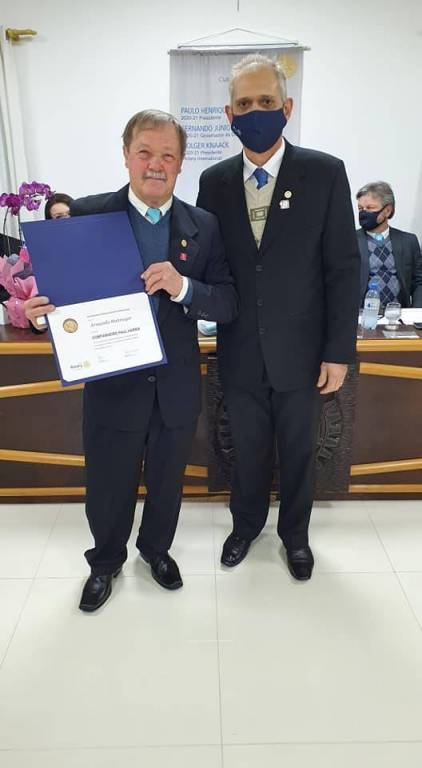 - Armando Hahameyer – 100% de Frequencia para o Periodo de 03/06/2020 a 30/06/2021e título Paul Harris