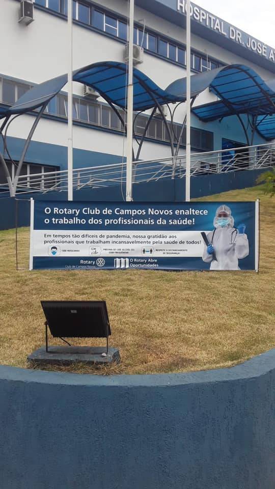 O Rotary Club de Campos Novos fez uma pequena homenagem aos profissionais de saúde de Campos Novos com a entrega de uma faixa ao hospital Dr. José Athanazio.