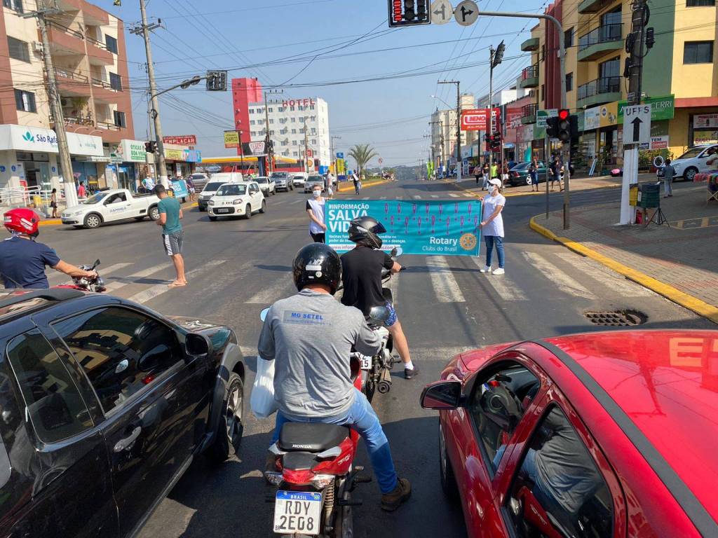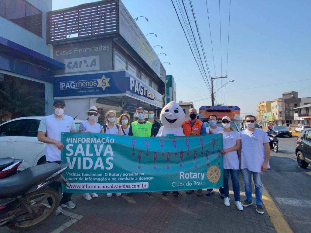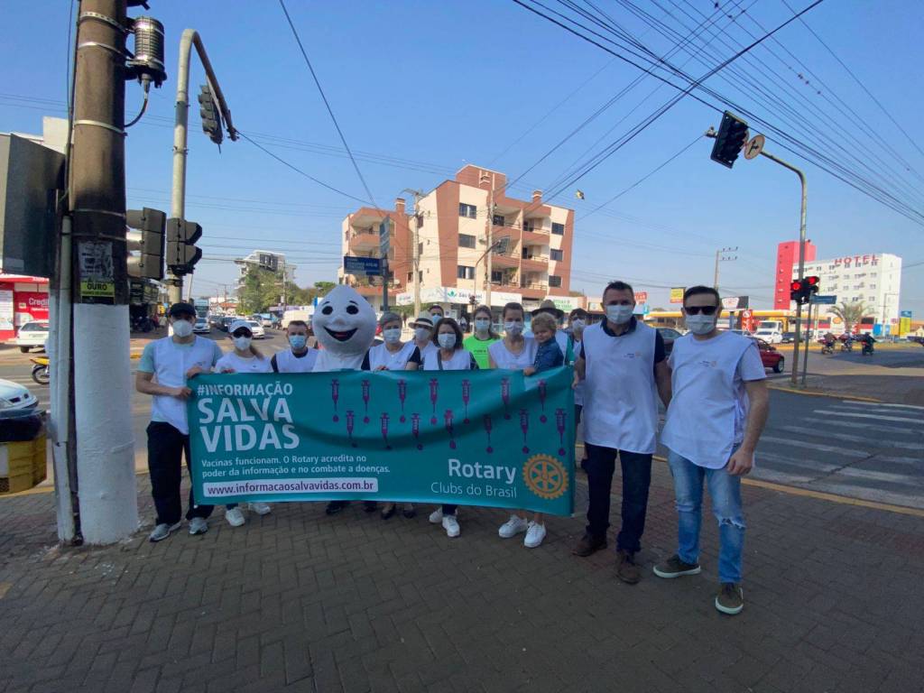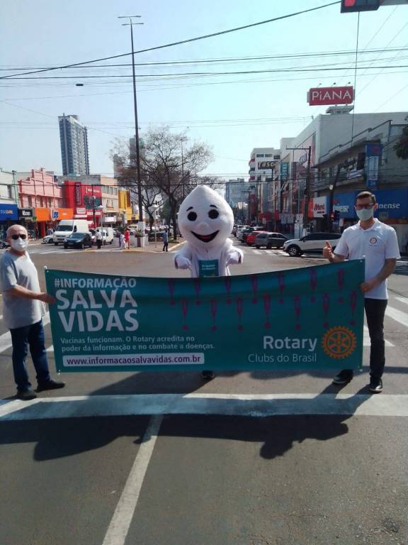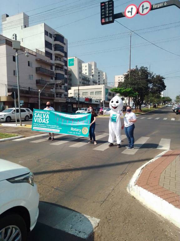Na ocasião os Clubes se dividiram nos semáforos em pontos estratégicos da cidade, fazendo a divulgação com faixas, folders, carros de som. Contamos com o apoio do famoso mascote da vacinação “Zé gotinha”.