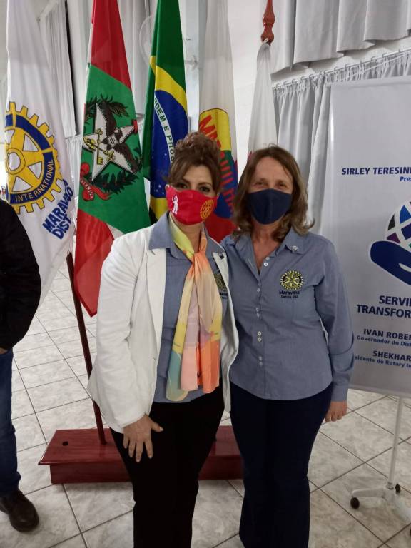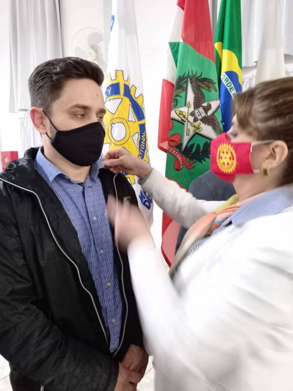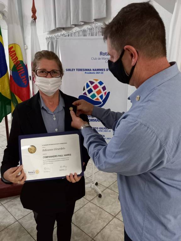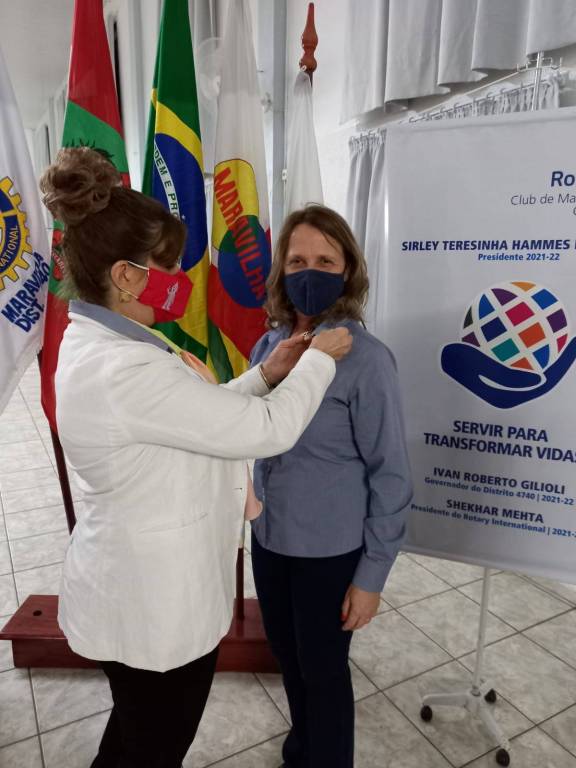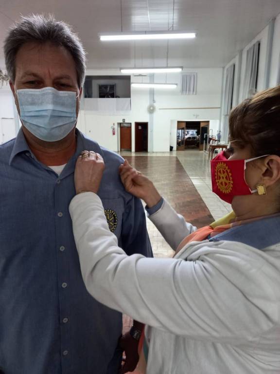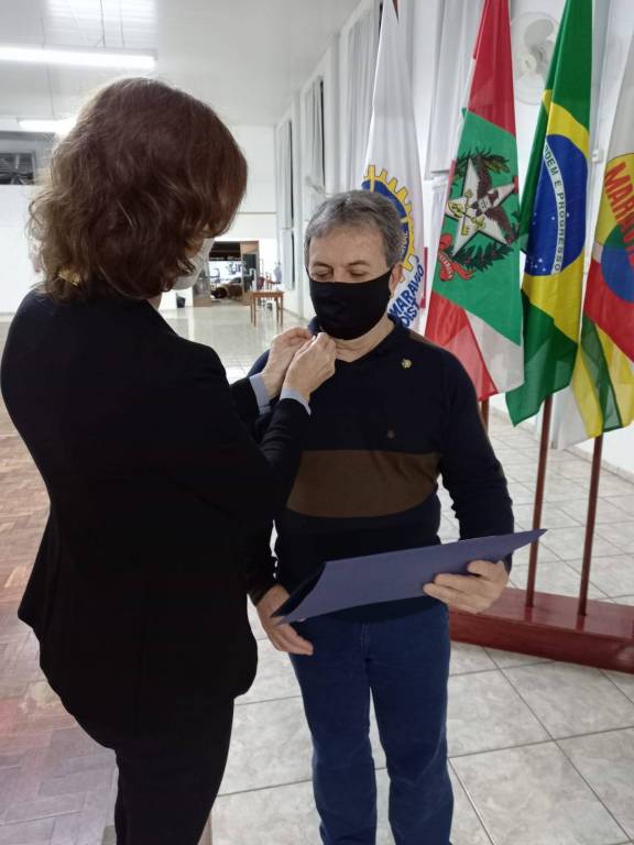 A Presidente Sirley Hammes D"Agostini, distintivou com o Pin do ano Rotário 2021/2022 os Companheiros Marcos Fernando Raber e Simone Dariva Raber - Dercio Menegassi - Karisson Ferreira Pan - Ivaneo Folletto - Irno Roversi e Noici Graeff Ranzi , em cada reunião hibrida, a distintivação acontece com os companheiros presentes.