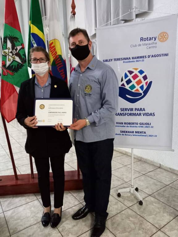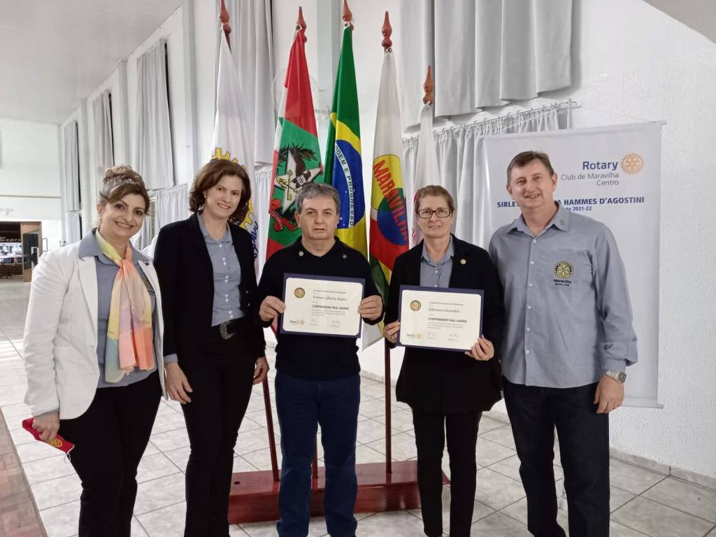 Na oportunidade foram entregues os Títulos Paul Harris aos Companheiros Pass Presidente Companheiros Edivanes Girardelo e Volmar Alberto Ranzi.
