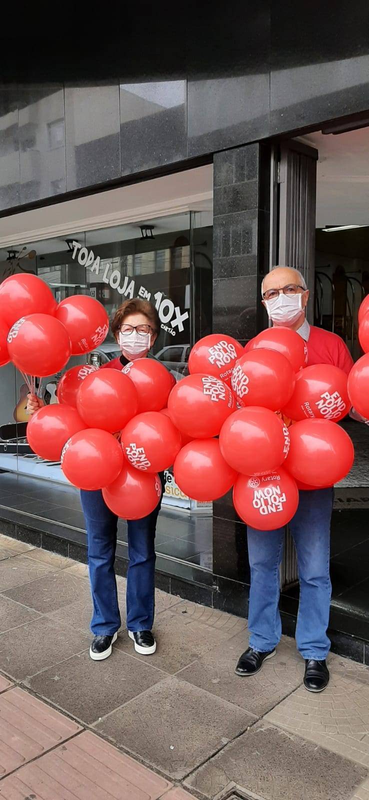 O Rotary Club de Joaçaba por meio dos rotarianos Marinês e Celso Freiberguer estiveram no Posto de Saúde Central de Joaçaba efetuando a entrega de balões para crianças que receberam a vacina.