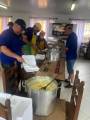 A preparação do evento mobilizou todos os companheiros do Rotary, que não pouparam esforços para vender os cartões, preparar os pratos e entregar uma gostosa refeição as pessoas que aderiram ao evento.