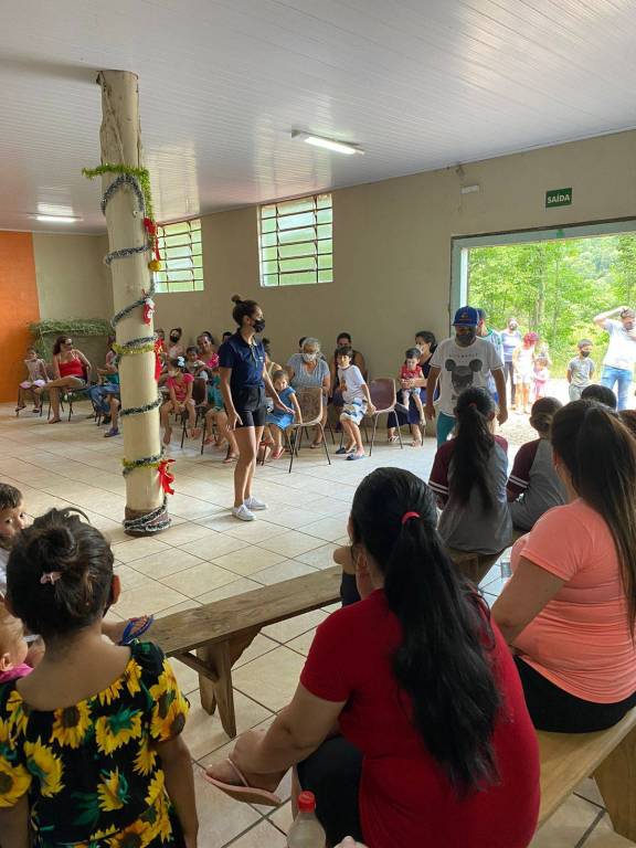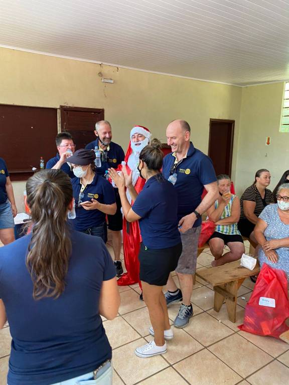Neste fim de semana, companheiros do Rotary Club de Chapecó Sul Centenário visitaram a comunidade do Rio dos Indios, em Chapecó, para fazer a entrega de presentes e cestas natalinas. Foram atendidas 45 familias e 66 crianças que aguaradavam no salão da comunidade a chegada do Papai Noel. O clube promoveu uma tarde diferente com pipoca, refrigerante e uma atenção especial à comunidade. Além dos brinquedos e as cestas, foi entregue 80 máscaras para uso das familias.