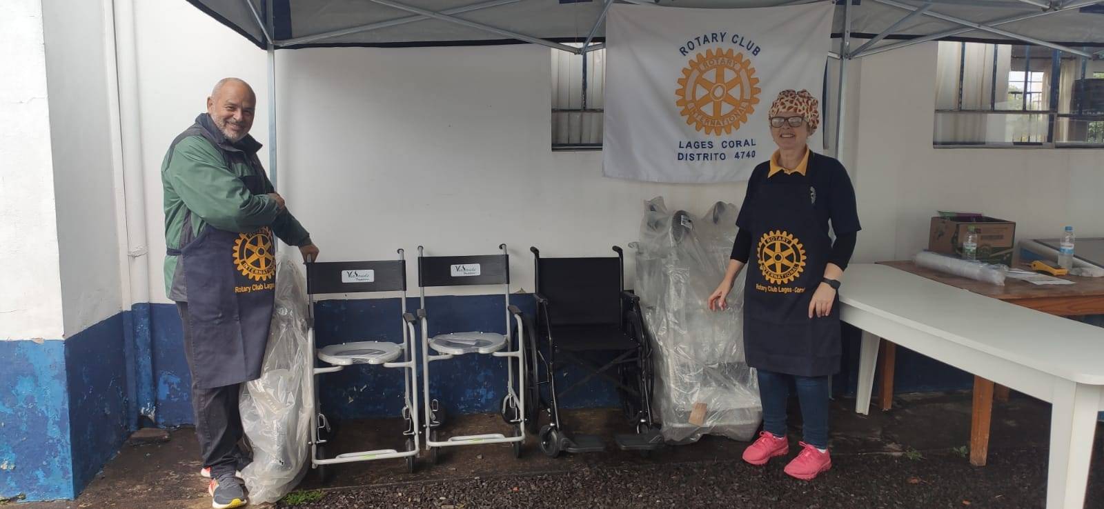 Com os recursos conseguidos no bazar solidário do dia 11 e 12 de março foram compradas cadeiras de Rodas e cadeiras de banho para o banco.