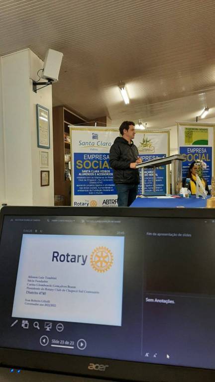 No dia 30 de maio foi realizado o "Apresenta Rotary" para 5 novos convidados. Na ocasião, o companheiro Alisson, do DQA, apresentou não somente a organização mas o clube com suas principais ações. Na reunião também foi menconado os prêmios que o clube ganhou na Conferência realizada na última semana, em Abelardo Luz. Dentre eles, o certificado da companheira Noeli, como sócia fundadora da Polioplus Society, por suas contribuições particulares.