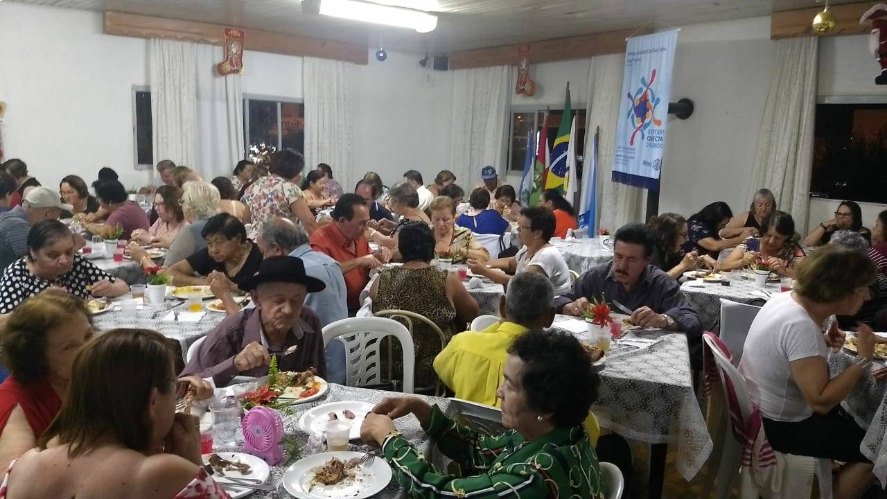 Aproximadamente 180 integrantes da terceira idade participaram na noite de quinta-feira, 12 de dezembro, do tradicional Jantar dos Idosos, organizado pelo Rotary Club de Otacílio Costa.