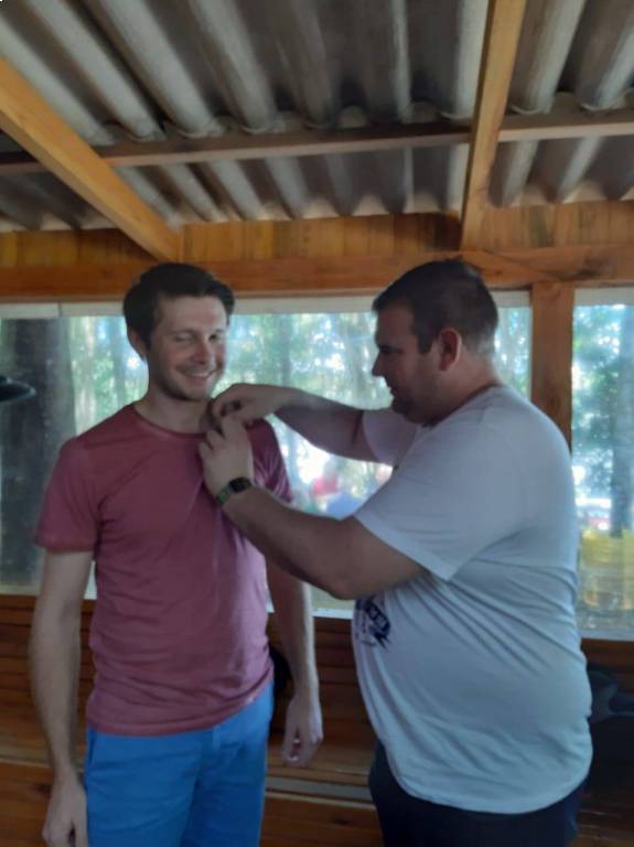 Após o roteiro de visitação os companheiros se reuniram no Camping Bar em Balneário de Pratas e após o almoço foi realizada uma breve reunião e entrega da pasta de boas-vindas ao Companheiro Fabio Carlos Hammes.