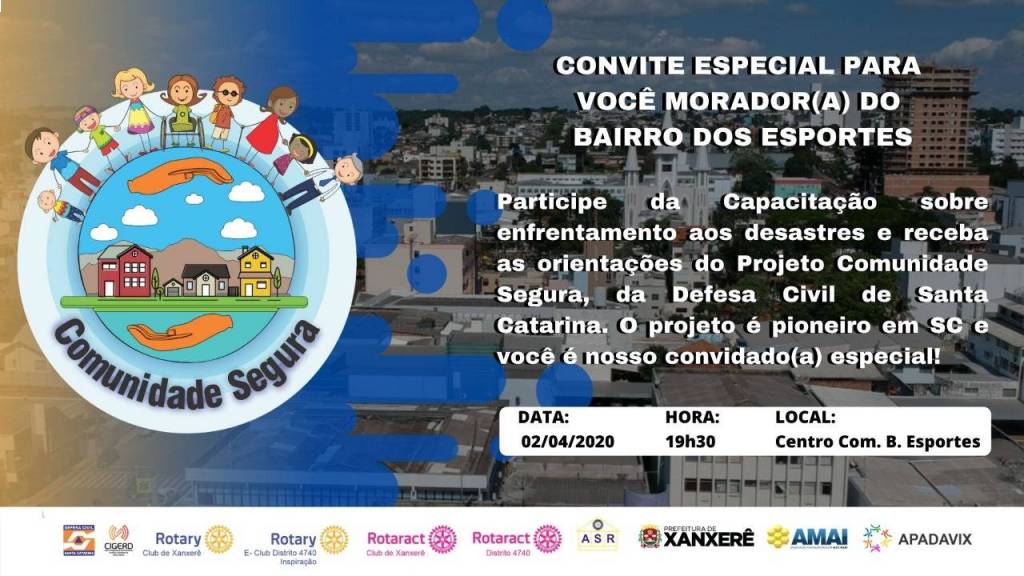 Rotary, Rotaract e ASR, participam do Lancamento do Projeto Comunidade Segura neste de 03/03/2020, as 9:oo horas com particiáção de imprença