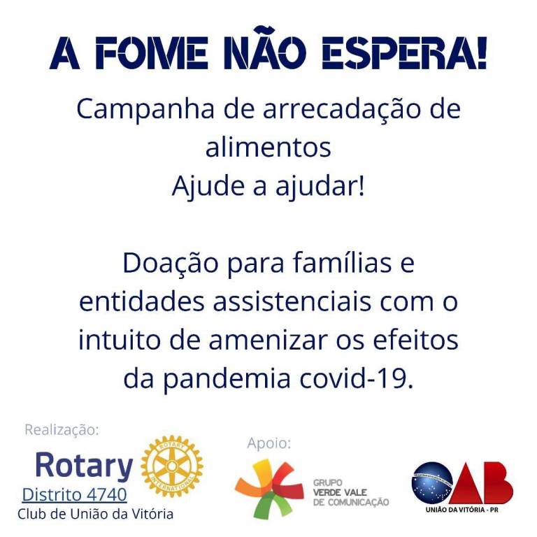 ROTARY CLUB DE UNIÃO DA VITÓRIA REALIZA AÇÃO SOCIAL “A FOME NÃO ESPERA” PARA AUXÍLIO DE FAMÍLIAS CARENTES