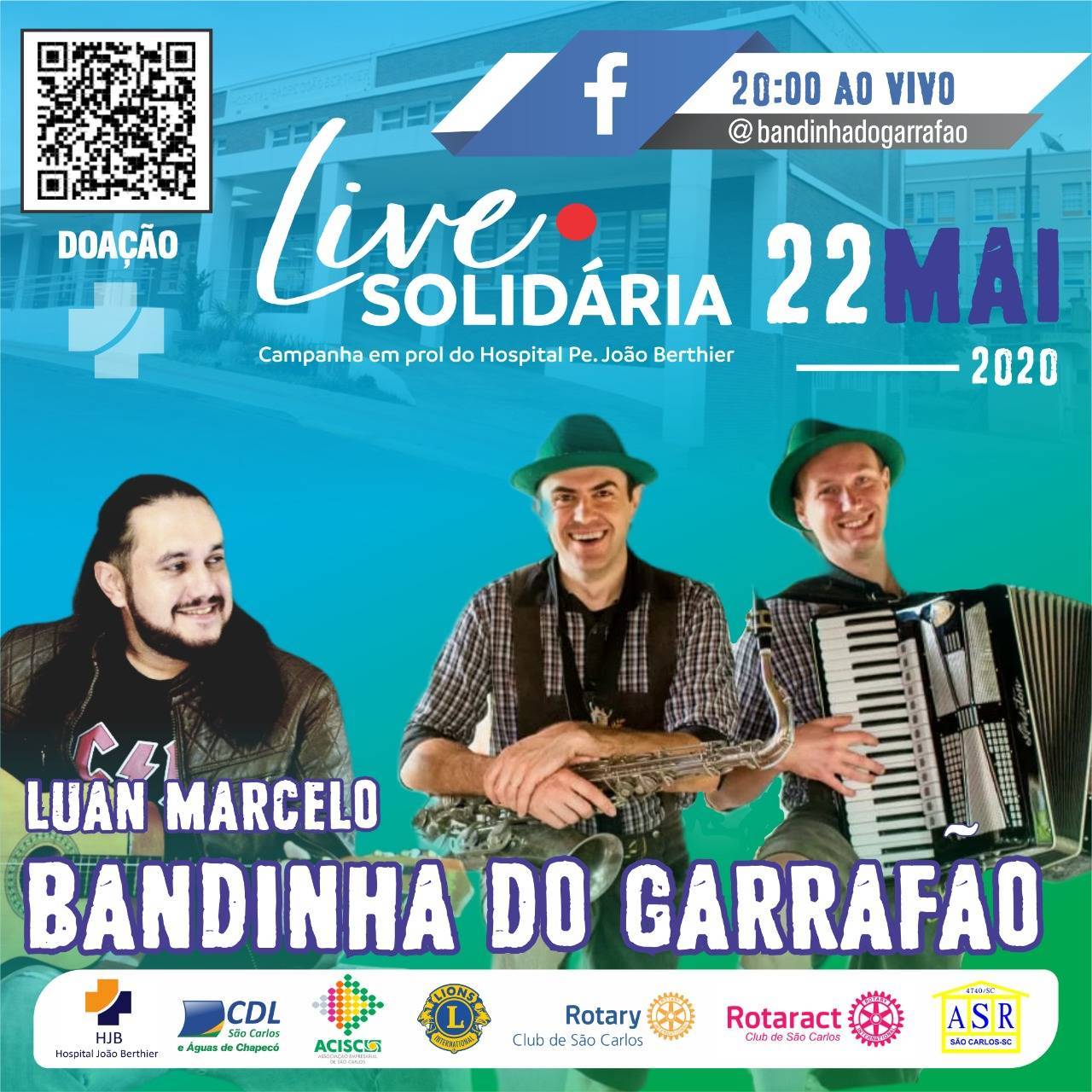 ANOTEM aí dia 22.05 sexta-feira terá live solidária em prol do Hospital, horário será 20 horas diretamente no Facebook Bandinha do Garrafão e compartilhado por todas as entidades parceiras terá um super repertório com o músico Luan Marcelo e a nossa super Bandinha do Garrafão.